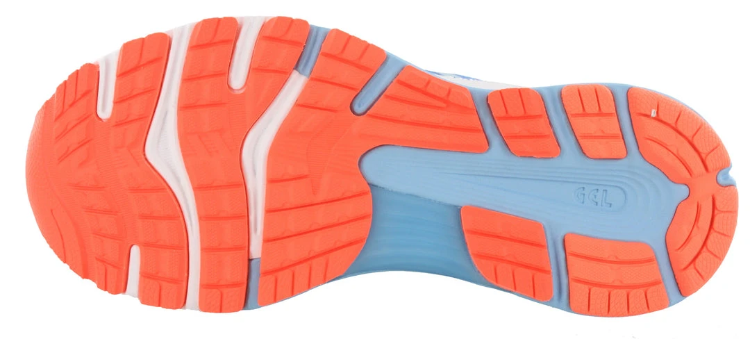 Run further than you thought possible in the GEL-NIMBUS® 21 running shoe for women by ASICS – packed full of plush cushioning and special technologies to respond to your natural stride. Now with a vibrant new design, it will get you pumped to unleash your inner runner, even when it’s grey outside. The GEL-NIMBUS® 21 shoe is fitted with our I.G.S® (Impact Guidance System) technology: a construction technique that allows the shoe to respond to your natural gait. TRUSSTIC SYSTEM® technology provides added stability. The upper is made from Jacquard mesh and will fit snugly, allowing air to flow and keep the foot fresh as you run and run. Our famous GEL® technology in the front and rear sole gives you energized cushioning in the form of shock-absorbing silicone for heavy-impact activity. Meanwhile, FLYTEFOAM® Propel technology in the midsole offers excellent bounce and toe-off. This lightweight foam formulation has a special high-energy return elastomer helping to put a spring in your step. Gain even more bounce with our SpEVA insole, which also helps the shoe last. To ensure a great fit, there’s an external heel counter which holds your heel firmly, keeping you comfortable as you pound the miles. And we’ve added an AHARPLUS™ heel plug on the outsole to help you be able to run as long as you want. This ASICS High Abrasion Resistance Rubber is a tough rubber compound used to reduce excessive wear. All of this lets the shoe take the strain so you can concentrate on what matters: your breathing and pace. WIDE WIDTH