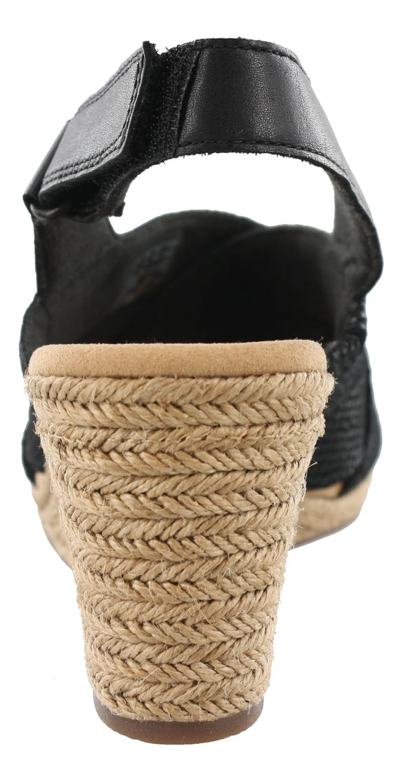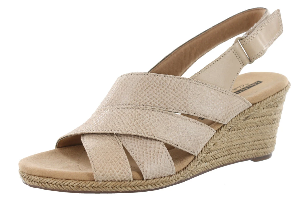 A wide diversity of textures and materials allow these comfortable wedges to stand out from the crowd. Its strappy upper is made from full grain leather and soft suede, and its jute-wrapped wedge adds extra summery appeal. A rubber outsole boosts traction and stability while an EVA midsole keeps it lightweight.These Clarks wedge sandals also offer Layers of Cushion Soft padding with an impact-reducing OrthoLite footbed reduce the shock of each step it takes. Adds interest to everything from denim shorts to sundresses.