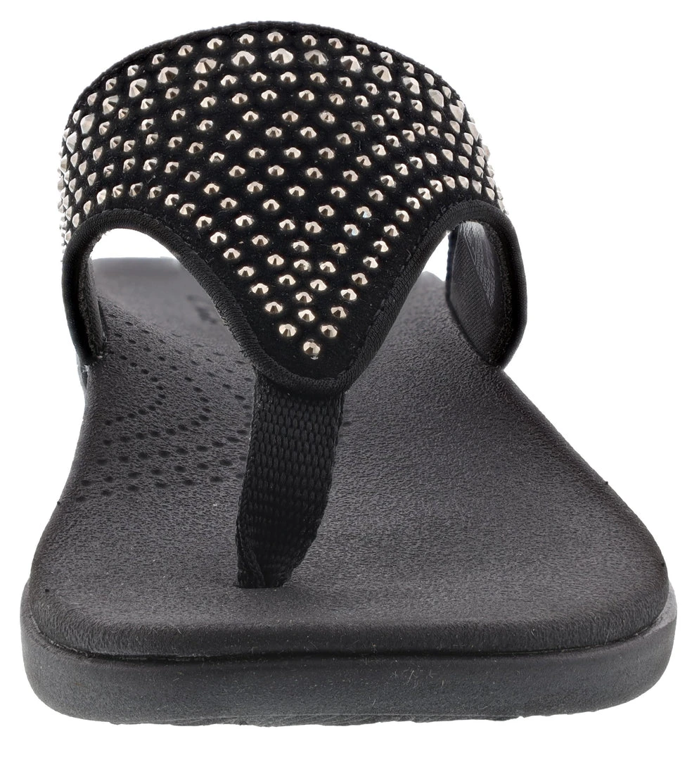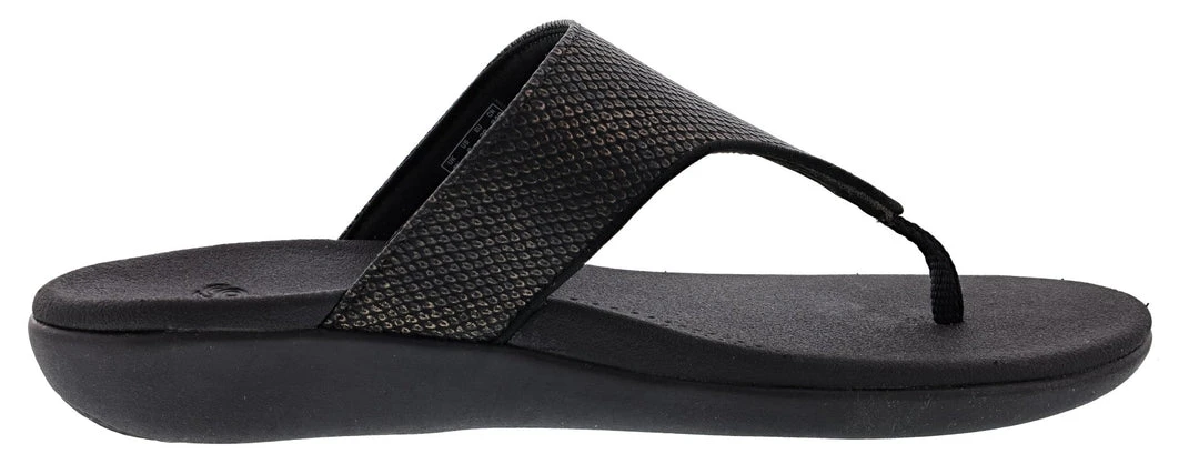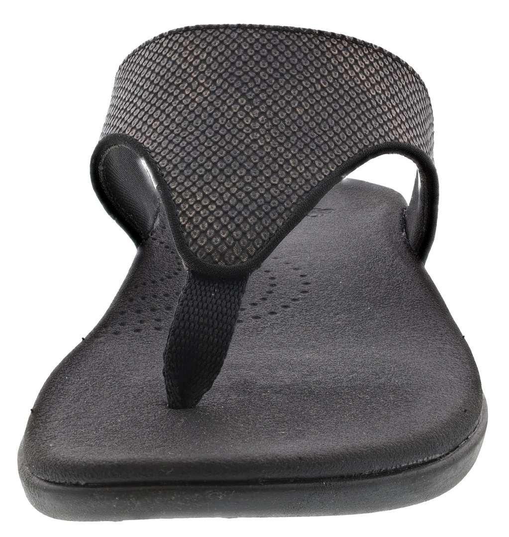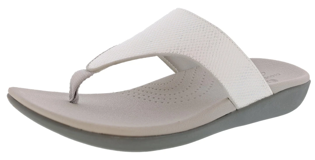Brio Vibe- This lightweight Cloudsteppers comfortable flip flops for wide feet are elevated by a sleek t-strap upper. Feet stay in soft comfort thanks to layers of Cushion Soft padding, and the combination of an EVA midsole and an EVA footbed reduce impact without adding weight. Switch from a a casual to a formal look instantly with these dressy flip flop sandals.