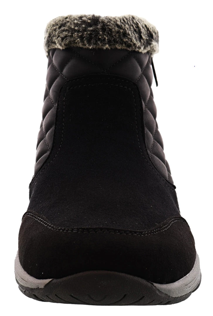 The Womens Easy Spirit Vance11 winter ankle boots are a weather-ready shoe style that allows your feet to stay cozy, and protected from the cold. Its solid construction offers a round-toe front, quilted back, inside zip closure, outside goring for a simpler slip-on, and faux-fur trim. Additional detail includes a microsuede/PU upper with rubber outsole.