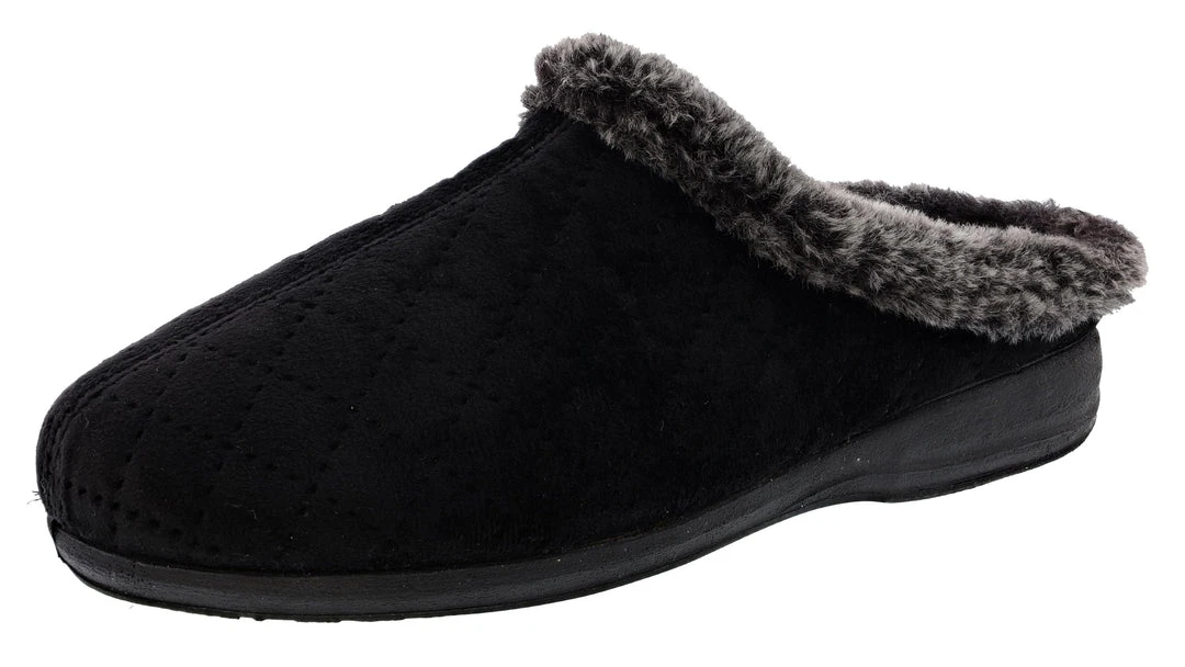 Beautiful slipper with diamond quilting and a center seam with a cozy lining and trim, and memory foam insole on a comfort outsole.