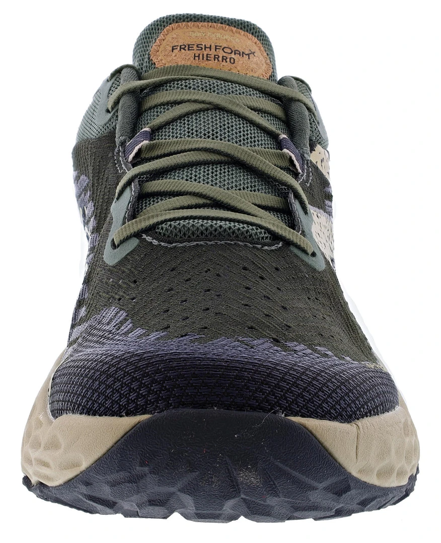 New Balance Fresh Foam Hierro v6 trail-running shoes – men’s Rack up some miles out on the trails in our rugged Fresh Foam Hierro v6. The New Balance Fresh Foam trail running shoes features a lightweight Fresh Foam midsole that helps to provide a soft landing on rough terrain. New Balance men’s trail running shoes a proven Vibram® outsole provides traction and durability. TPU threads woven into the upper at key points enhance the structure of this men’s shoe and add toe protection, while laser perforations boost breathability.