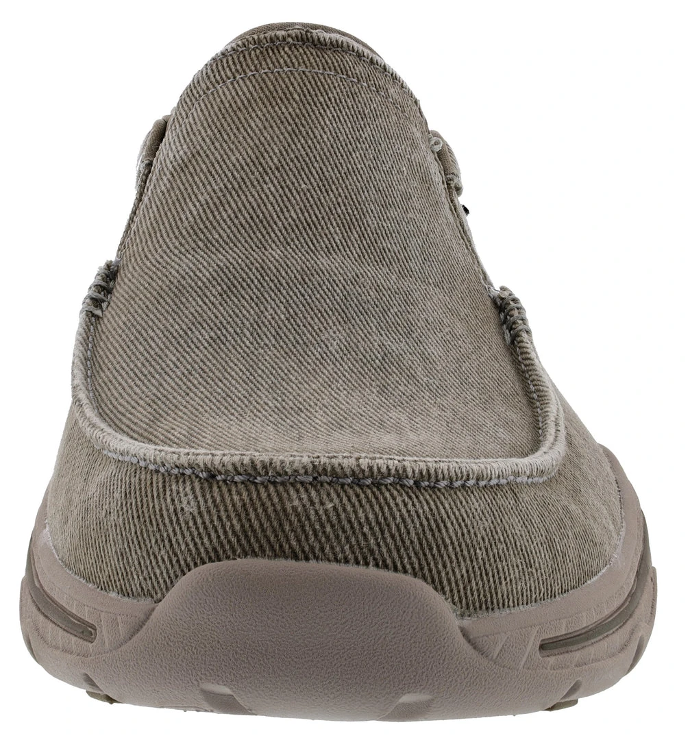 Canvas means comfort and cool, laid-back style in Skechers Relaxed Fit: Creston – Moseco. Soft woven fabric upper in a slip-on casual comfort moc toe loafer with Air-Cooled Memory Foam insole.