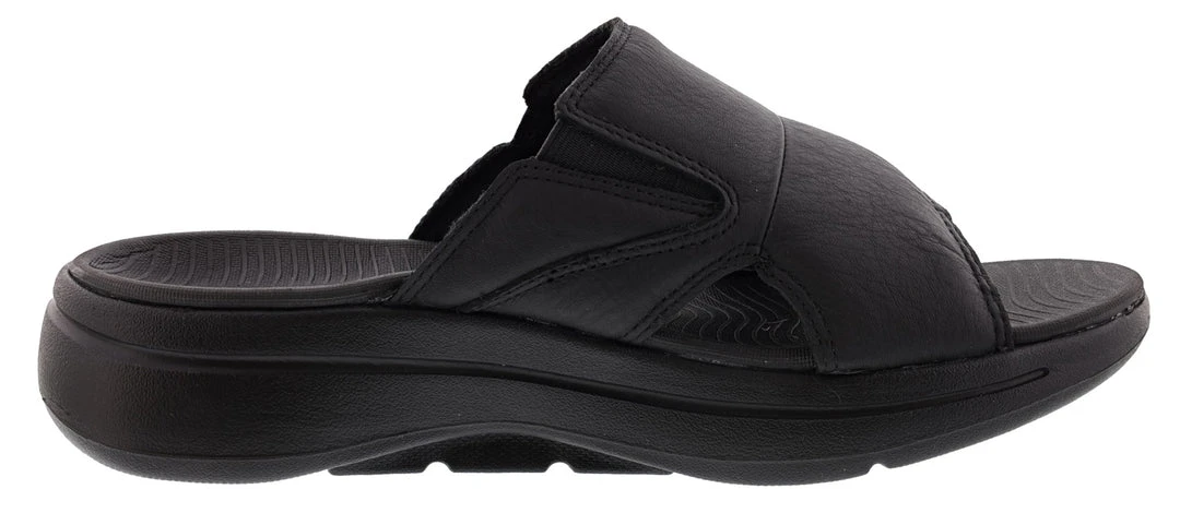 A classic sunny weather slide combines with amazing supportive comfort in Skechers GO WALK Arch Fit – Ultra Span. This one band slide sandal features a smooth leather upper with an Arch Fit footbed and lightweight ULTRA GO cushioning.