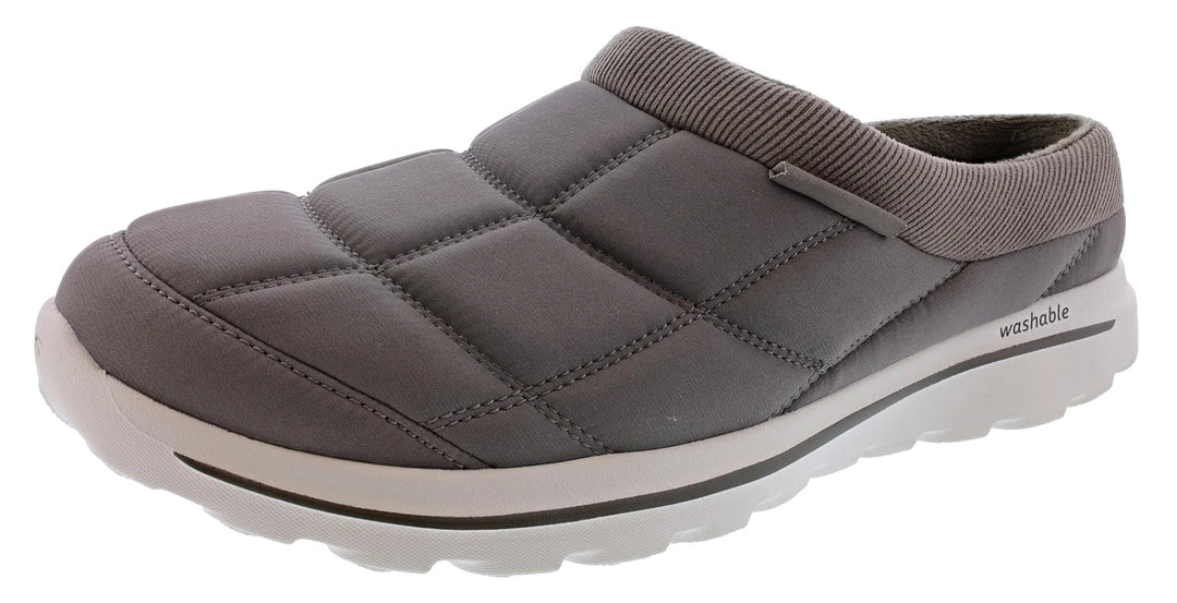 Easy-wearing style and laid-back comfort deliver in Skechers GO WALK Lounge. This casual slip-on features a quilted woven fabric and synthetic upper with a Skechers Air-Cooled Goga Mat insole and lightweight ULTRA GO cushioned midsole.