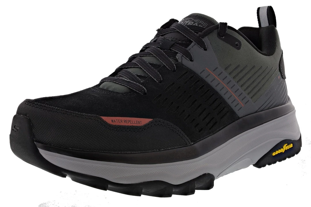 Add more cushioning between you and the tough terrain with the Skechers Max Cushioning Trail. A cushioned comfort trail hiking and trail running design on an ULTRA GO® cushioned platform. Water repellent suede and mesh fabric upper.