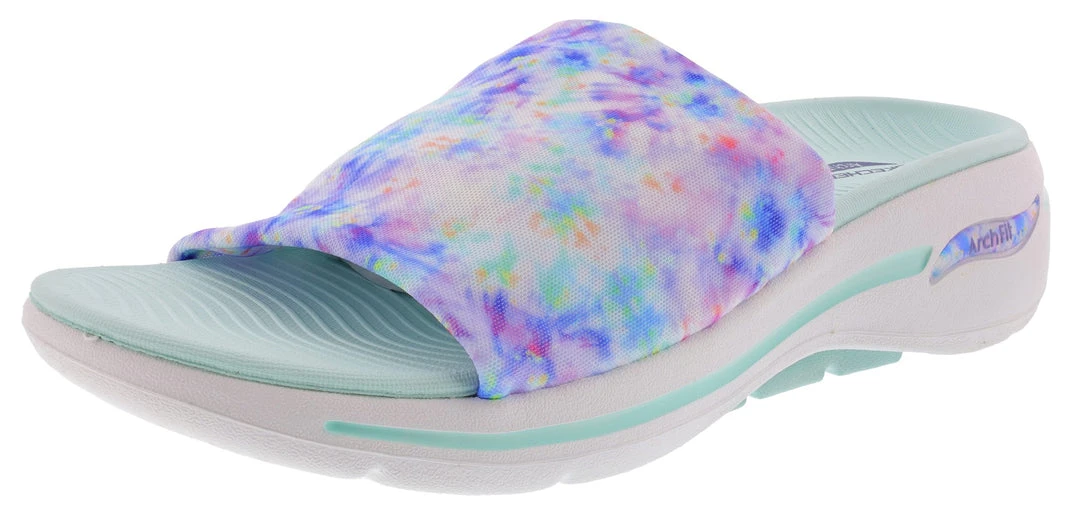 Your feet get the support and comfort they so richly deserve in the Skechers GO WALK Arch Fit Captivate.  This slide sandal features a breathable mesh upper with a supportive Arch Fit  contoured footbed and a lightweight, responsive ULTRA GO  cushioning.