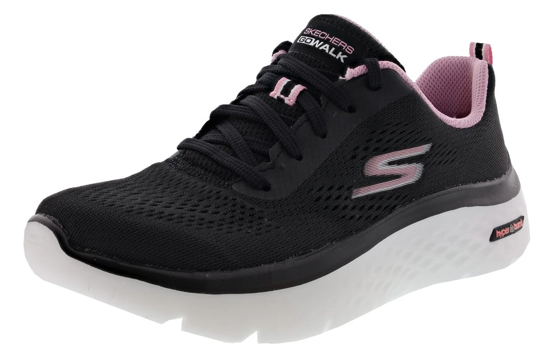 Skechers Women’s Go Walk Hyper Burst Space Insight casual walking shoes. Enjoy every step of the way wearing these Skechers Go Walk tennis shoes. These Skechers Go Walk black shoes features a breathable athletic mesh upper with an Air-Cooled Goga Mat insole. Place your Skechers Go Walk shoes women’s.Â